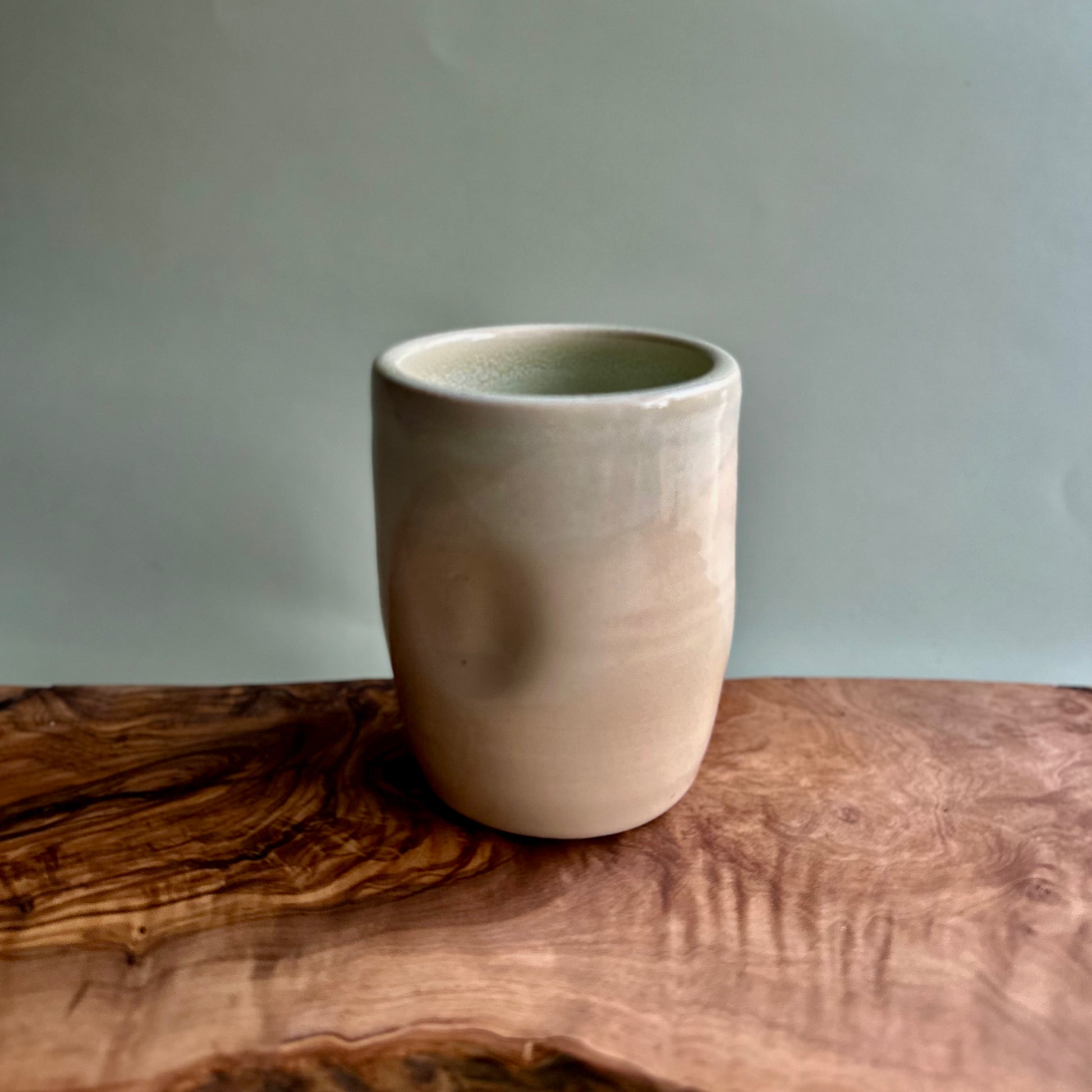 this limited release tumbler with a snowy cardinal decal was hand-crafted on a potters wheel with a speckle white clay body and finished with a lovely snowy white glaze.